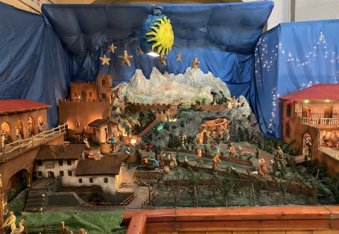 Movimentazione di 85 statuine ambientate in paesaggi e antichi mestieri resi reali con particolari movimenti, balzi d'acqua, effetti giorno e notte, sottofondo musicale, giochi di luci.
