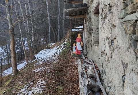 Nel cuore incantato di un piccolo ma pittoresco borgo alpino, sorge il presepe diffuso di Meire Allione. Girovagando tra le case dall'architettura tradizionale, il presepe si dispiega come un'opera d'arte vivente. I personaggi, avvolti in vesti rustiche, sembrano appartenere a questo scenario montano, simboli di semplicità e umiltà. Il paesaggio intorno al presepe è altrettanto straordinario. In questa ambientazione, immersa nell'atmosfera unica di una borgata di montagna, la spiritualità si fonde armoniosamente con la natura circostante, creando un'esperienza natalizia indimenticabile per chiunque si avvicini a contemplare questa rappresentazione di fede e tradizione. Le figure sacre sono ritratte con cura e maestria, mentre gli altri figuranti assumono forme amorfe per suscitare nel pubblico un coinvolgimento più profondo e personale. Questo stile apre uno spazio per l'immaginazione e invita le persone a proiettare le proprie emozioni, storie e identità nelle figure senza un volto definito permettendovi così di riconoscervi, immedesimarvi e/o ricordarvi di qualche vostro caro in questi personaggi.